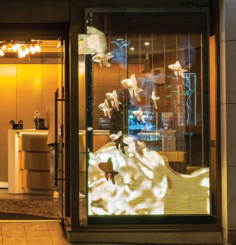 Take a giant leap forward and meet the newest crossover. A Shop window and a video display. With the introduction of transparent display windows, the options to promote and maerkt your store are endless.